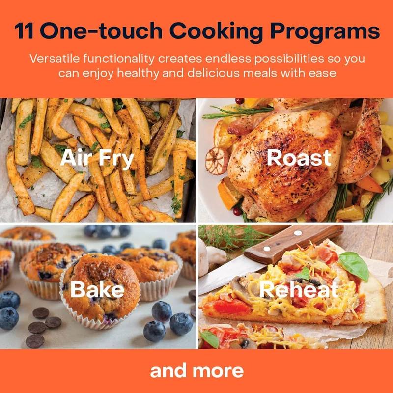 - تکنولوژی Rapid Air Circulation: المنت گرمایشی قدرتمند در ترکیب با فن با سرعت بالا، هوای داغ را با سرعت زیاد در تمام سطوح غذا به گردش در میآورد. این گردش کامل باعث ایجاد پوسته بیرونی ترد و طلایی و مغز پخت شدن کامل غذا میشود، درست مانند سرخ کردن سنتی، اما بدون نیاز به قطرهای روغن اضافی.