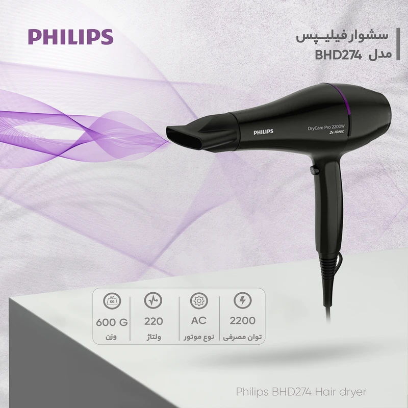 ⚙️ جدول مشخصات فنی سشوار Philips BHD274