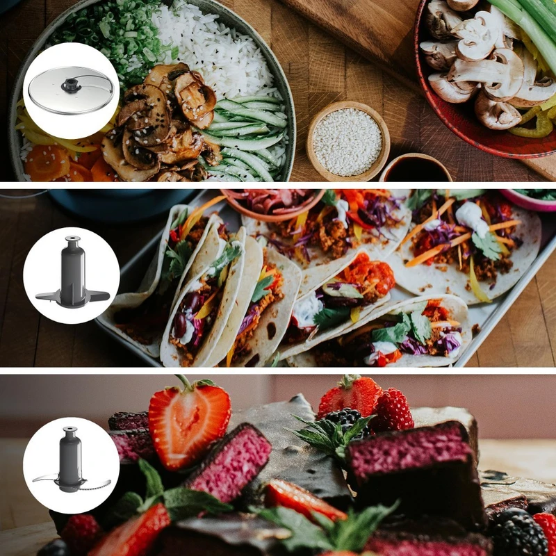 - عملکرد سریع: آمادهسازی حجم زیادی از مواد اولیه (مانند سالاد یا مواد لازانیا) در کمتر از یک دقیقه.