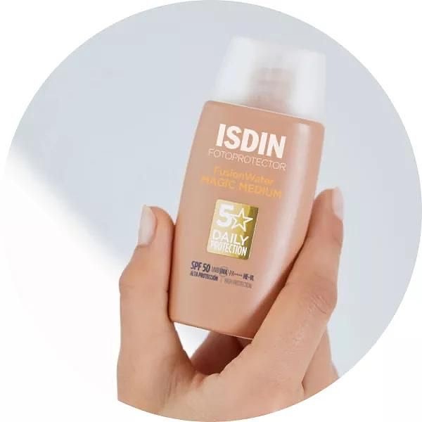 معرفی و بررسی کامل ضدآفتاب رنگی ISDIN Fotoprotector Fusion Water MAGIC Medium SPF 50: جادوی محافظت، پوشش طبیعی و درخشش بینظیر!