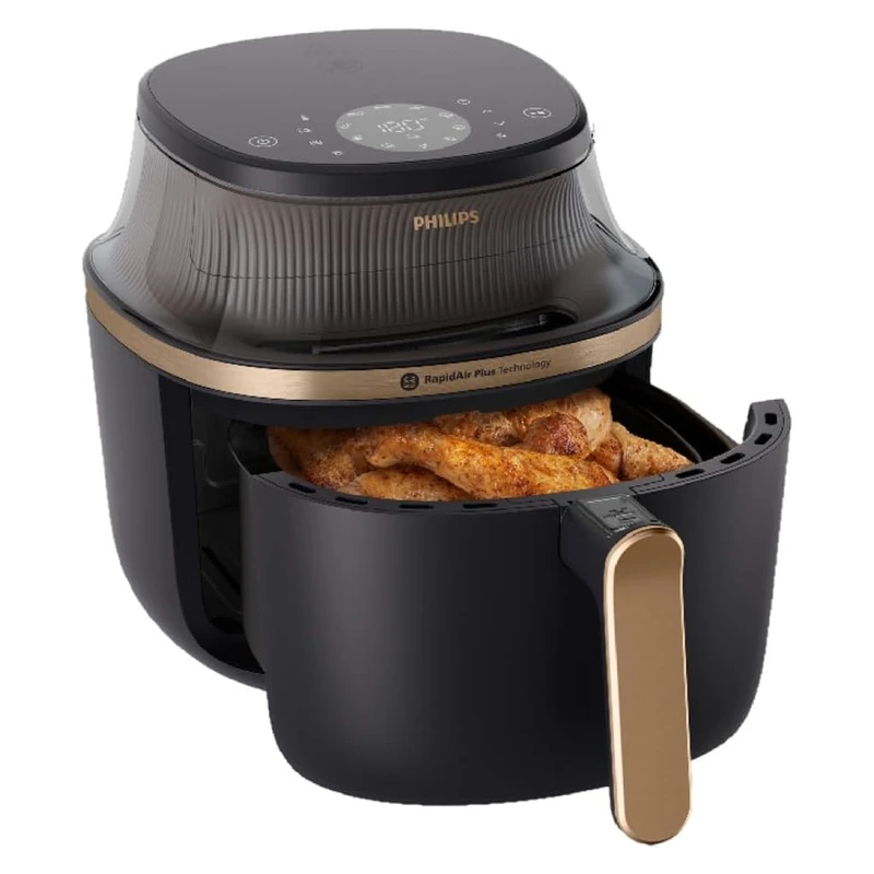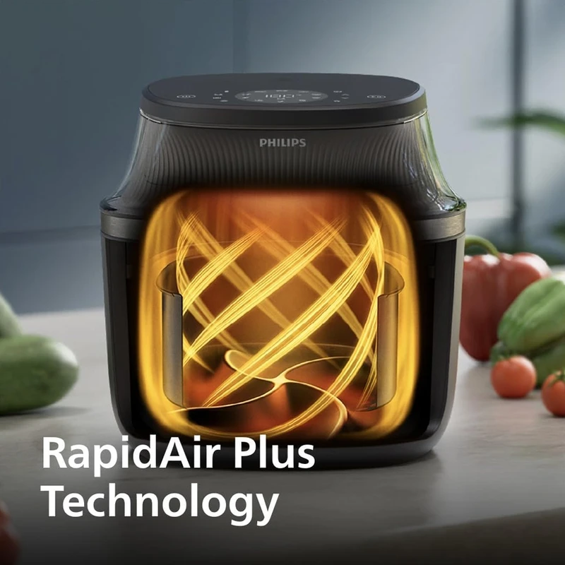 این دستگاه از پیشرفتهترین نسخه فناوری Rapid Air استفاده میکند. گرما با سرعت بسیار بالا و به صورت چرخشی در محفظه پخت به گردش در میآید. این گردش هوای قوی باعث میشود:
