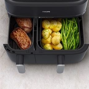 همچنان ستون فقرات این دستگاه، فناوری Rapid Air است. جریان هوای فوقالعاده سریع، تضمین میکند که غذا از تمام جهات حرارت ببیند و پوششی یکدست، طلایی و ترد به خود بگیرد؛ بدون نیاز به افزودن روغن زیاد.