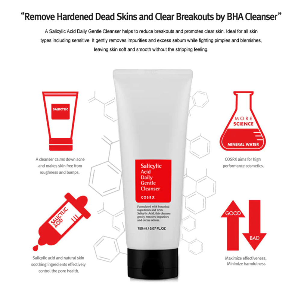 با Salicylic Acid Daily Gentle Cleanser Cosrx 150ml، گامی مهم در جهت داشتن پوستی شفاف، سالم و بدون جوش بردارید. به پوست خود هدیه درخشندگی و اعتماد به نفس را بدهید!